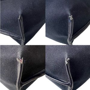 Navy blue canvas with leather navy and pink dual colored double handles
