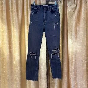 Super cute ultra high rise Abercrombie and Fitch ripped jeans.