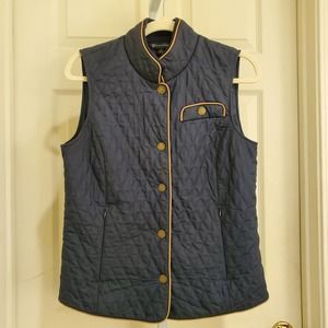 BROOKS BROTHERS Women's Diamond Quilted Navy/Tan Snap Front Riding Vest sz M