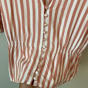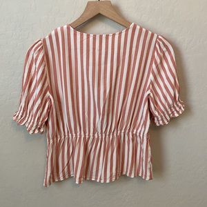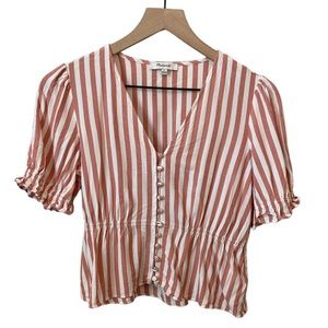 ❗️SOLD Madewell Short Sleeve Ruffle Peplum Pink & White Striped Blouse Small