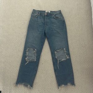 Free people Maggie straight leg mid rise distressed denim jeans size 25