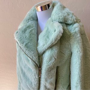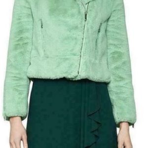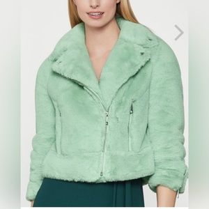 BCBGMAXAZRIA $338 “Violet” Faux Fur Moto Jacket In Pistachio Size XS