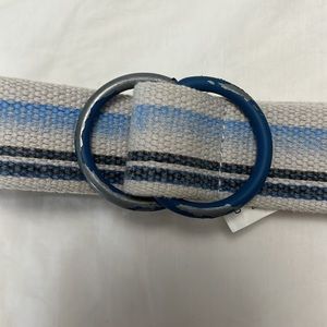 Gap D-ring blue and gray belt. The blue paint is chipping off but the underlying metal still goes with the colors of the belt.