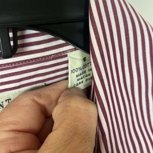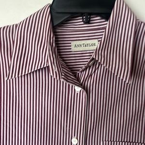 EUC Ann Taylor, 100% cotton burgundy and white striped button-down shirt small