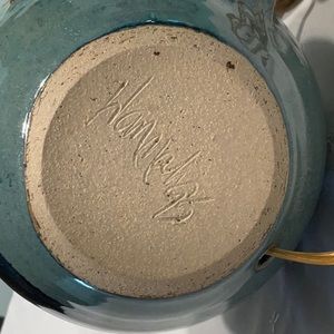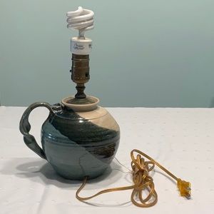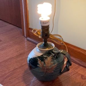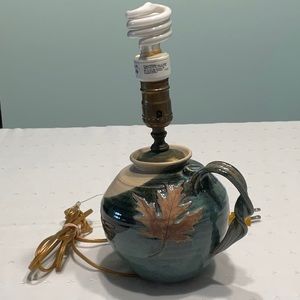 Hand Crafted Ceramic Lamp with Maple Leaf Overlay, Twisted Handle, New Cord
