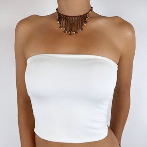 Vintage Y2K Brown Beaded Tassel Choker Necklace - Bohemian Fairy Grunge Jewelry