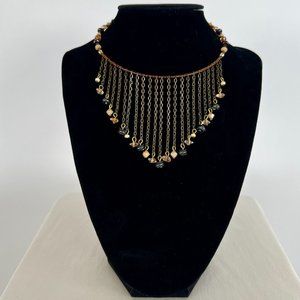 Features a waterfall design, and earthy colors. Omg, this choker is gorgeous! The design is so cool and unique! It looks great layered too!