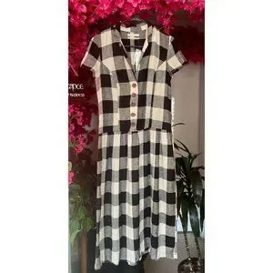 NWT Urban Outfitters Natalie Checkered Print Linen Midi Dress - Size XS