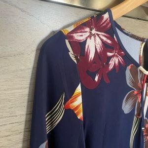 Love the cut of this beautiful top by Jennie & Marliss! It is made of 95% polyester and 5% spandex. Armpit to armpit measurement is 20 inches, and length of top is 24.5 inches. If you purchase more than one item from my closet, everything will be 30% off!