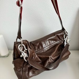 Soft leather bag, perfect for work, fits laptop, in good shape, has a short and a long strap.