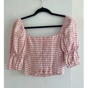Reposhing this item I purchased from @kmarlise. Loved it, but ready to rotate for something new. Cute pink or blush gingham check pattern with a puff sleeve and square neck.