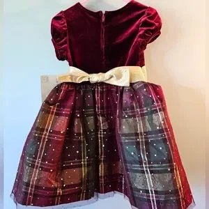 NWT-Bonnie Jean-Girl's-Dress-Size 3T-Burgundy & Gold