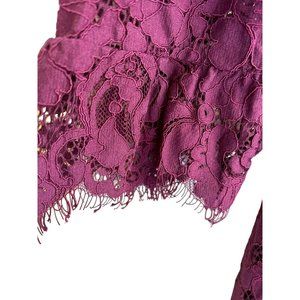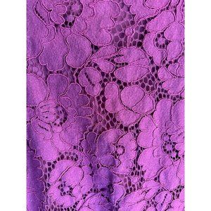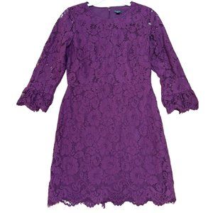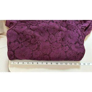 Ann Taylor Women's Purple Lace 3/4 Length Sleeve Dress Size 6 Petite Frayed Hem