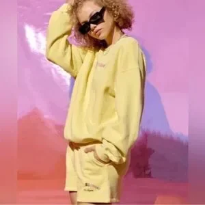 Daydreamer Ransom Note Hi-Frequency BF Boyfriend Sweat Shorts in Citron Yellow