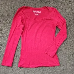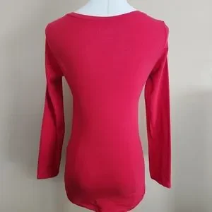 ◽️ Red long-sleeved (or 3/4 sleeve) scoop neck stretch tee shirt