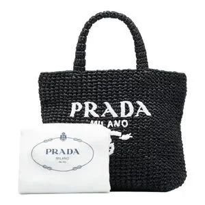 Introducing the Prada Small Crochet Tote Bag, the perfect accessory for a summery mood. Made of raffia-effect yarn, this tote bag has a soft, deconstructed design that is both stylish and practical. The natural material gives it a light and airy feel, while the crochet design adds a touch of texture and dimension. The embroidered lettering logo adds a subtle touch of luxury to the bag. With its spacious interior and comfortable handles, this tote bag is perfect for carrying all your essentials, whether you're heading to the beach or running errands around town. Get your hands on the Prada Small Crochet Tote Bag today and elevate your summer style.