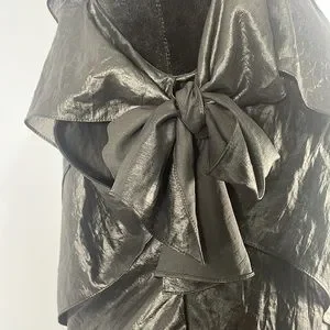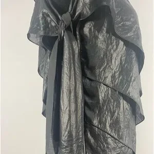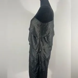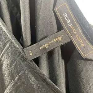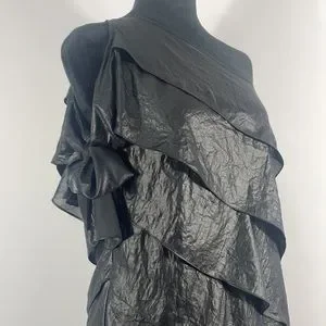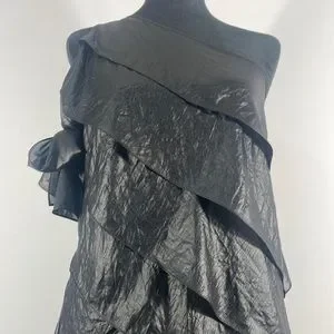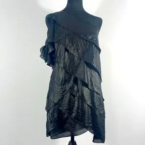BCBG Maxazaria XS Black, One Shoulder, 6 tiered, ruffle dress, with tie on one shoulder you can let loose or tie in bow tie! Has a weathered, leather look, soft and light!