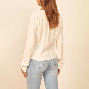 Reformation White Fulham Long Sleeve Crepe Blouse sz M