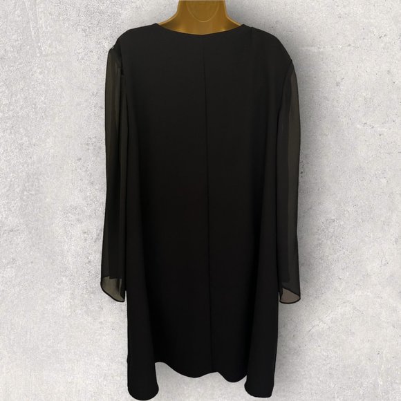 M&S Womens Black Long Split Sheer Sleeve Lace Shoulder Shift Dress UK 20