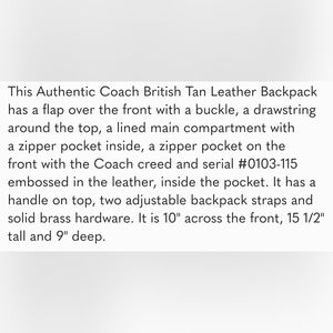 Reposhing this vintage leather Coach backpack. Never had the opportunity to use, and still in original shipping packaging.