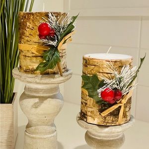 ✅ 4 Candles have a Birch Bark Finish and can be used with or without the removable Berry Sprigs for a Holiday or Winter Look.