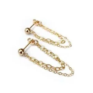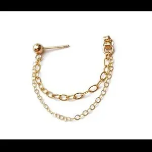 These earrings feature a small 14K Gold Filled Ball Stud at the top, which is attached to a delicate double chain that loops around the ear for a Modern and Sophisticated Look.