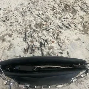 Brand new The Attico mini wynona clutch in black super soft calf leather and silver tone chain link strap. Top zip fastening, with internal card slots. Includes dust bag and tags.