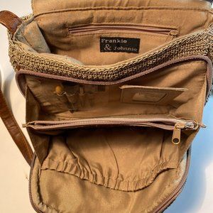 Frankie & Johnnie Tan Crocheted Crossbody Shoulder Bag