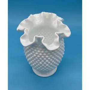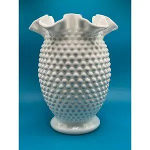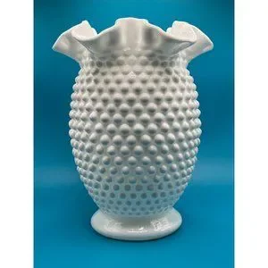 Vintage Fenton White Hobnail Milk Glass Double Crimped Vase 8" tall