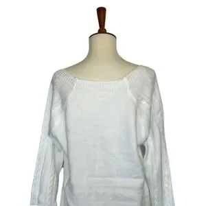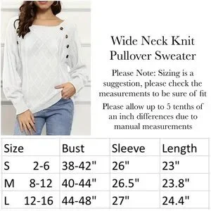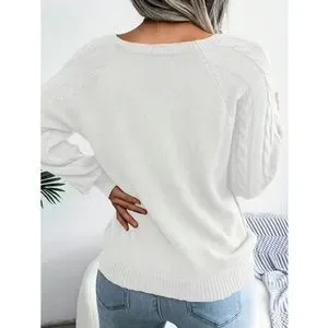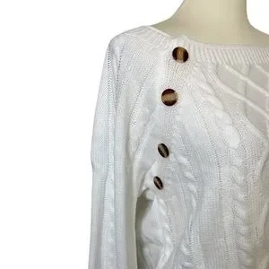 White Wide Neck Knit Pullover Sweater with Button Detail