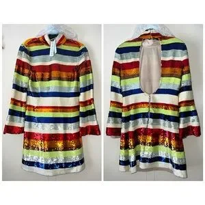 Alice + Olivia Mailynn Sequin Striped Multicolored Mini Dress