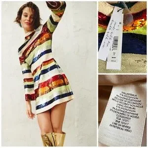 A turtleneck-style dress with sequin stripes is a retro-inspired dream come true. With a mockneck, slim, flattering fit and the most exquisite sequins, we don't think this should just be reserved for after-hours.
