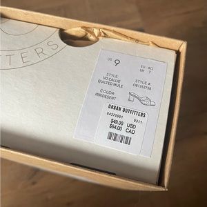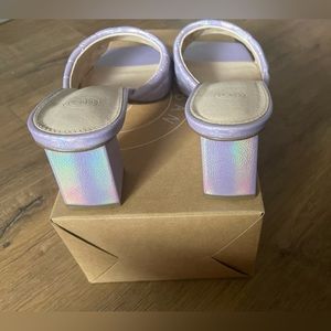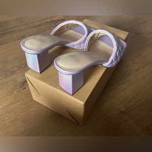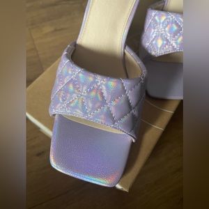 URBAN OUTFITTERS-NWT/Box Women's Quilted Lavender Sandals! These gorgeous shoes have an iridescent shine, made of sturdy cloth material, rubber treaded soles, square toes, 2 inch heel.