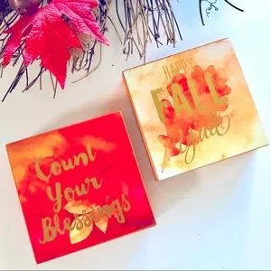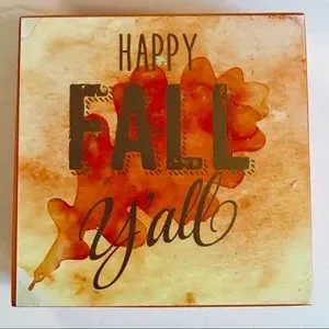 Set of 2 Fall Inspired Artwork. They measure 5-1/2” X 5-1/2” and are 1-1/2” deep. Perfect for hanging in a small area or standing up to enhance a fall display. Great for your home or office. Lightweight. “Happy Fall Y’all” &