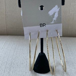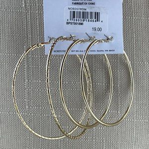 BP Nordstrom Women Earrings Gold Tone Hoop Ear Jewelry Set of 2 Earrings