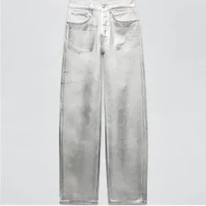 ZARA ZW MID-RISE BOYFRIEND JEANS SILVER