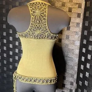Bebe army green Crochet Halter Top, vintage in EUC.