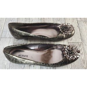 Alfani Womens Shoes Faux Snake Grey/Black Metallic Dressy Flat Size 7M