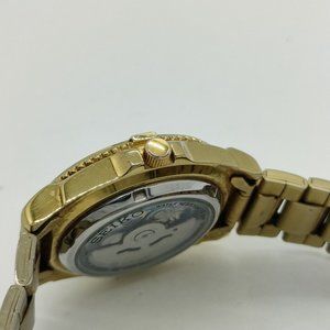 Seiko is such a reliable brand and this watch is a classic design with the black face and gold band. It is in good condition with normal signs of wear from use. Please see pictures for more details and ask if you have any questions.