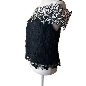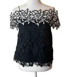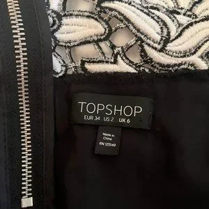 Topshop Black & White Floral Lace Cold Shoulder Top. Lined Size 2