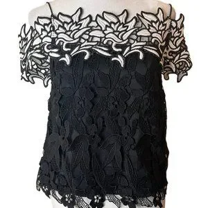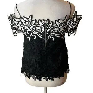 Topshop Black & White Floral Lace Cold Shoulder / Spaghetti straps Top Size 2