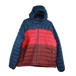 LL Bean Red Blue Colorblock Polyester Down Hooded Jacket XXXL Reg