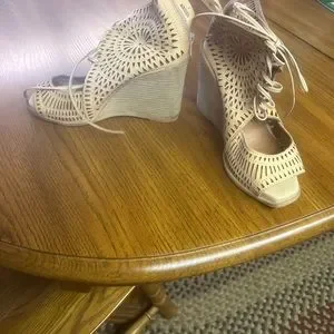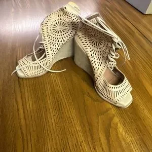 EUC -Awesome pair of sandals with wedge heel and lace up ankle. Padded footbed for comfort. Moving must sell. Pet friendly smoke free home