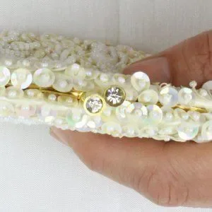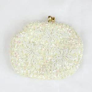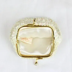 Vintage Beaded Coin Purse Walborg Change Wallet Kiss Clasp Sequins White PU60