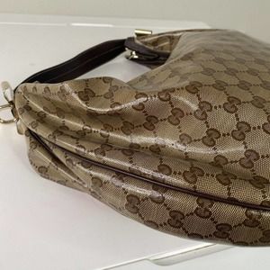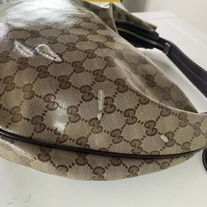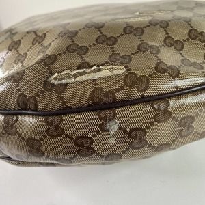 Gucci duchessa Hobo GG Logo, Crystal Coated canvas Bag , Beige Brown , Damaged