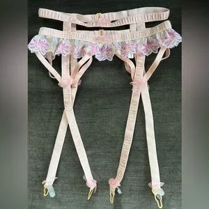 For Love and Lemons Pink Floral April Bloom Garter Belt