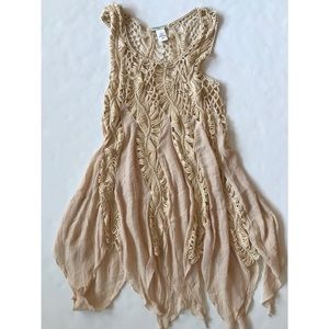 Vivid Importers of NY Women’s Tan Sleeveless Boho Crochet Swimsuit Coverup Small