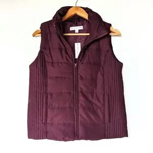 NEW YORK & COMPANY women's plum/wine quilted puffer vest coat
