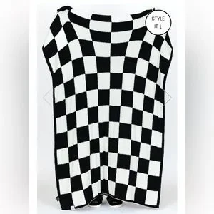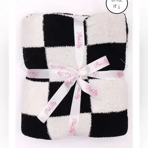 Pink Lily Black White Checkered Ultra Soft Cozy Throw Blanket NWT