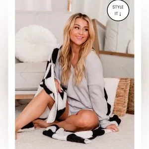 Pink Lily Black White Checkered Ultra Soft Throw Blanket NWT